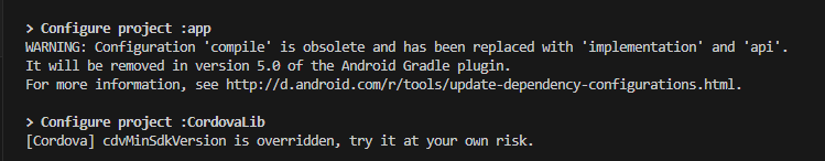 WARNING: Configuration 'compile' is obsolete and has been replaced with 'implementation' and 'api'.